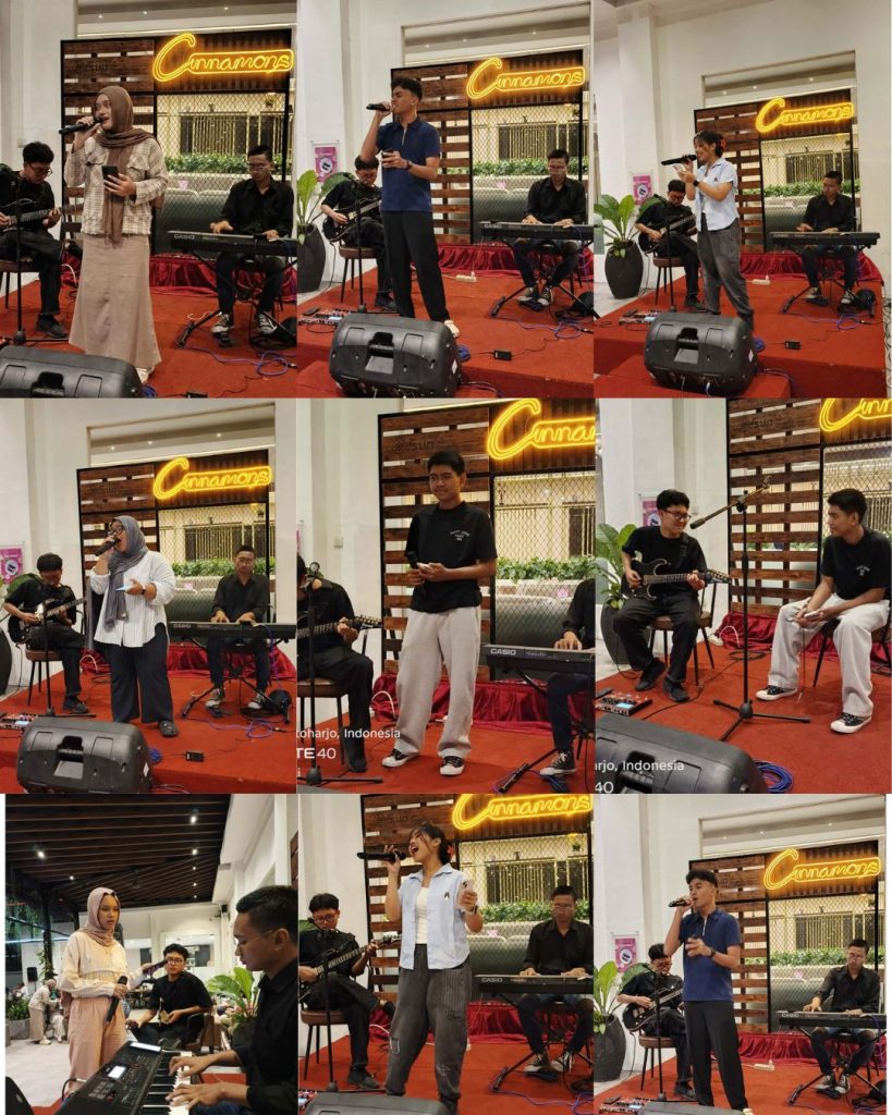 Madiun – Suasana Jumat malam, 7 November 2025 menjadi lebih meriah dan penuh energi kreatif di area outdoor Café The Sun Hotel Madiun. Para murid dari SMA Negeri 2 Madiun tampil mengisi acara Live Acoustic bertajuk “Cinnamons High School” dengan penuh percaya diri, menampilkan karya musik dan vokal yang menggambarkan perkembangan artistik mereka sebagai generasi muda kreatif. Acara yang dimulai pukul 19.00 WIB ini menghadirkan pertunjukan bernuansa santai, elegan, sekaligus menjadi ruang aktualisasi bagi para pelajar untuk tampil di panggung publik secara profesional. Ini menjadi praktik pembelajaran seni budaya yang bukan hanya berada di dalam kelas, tetapi juga terasa nyata melalui pengalaman langsung, interaksi real dengan audiens, evaluasi diri, konsolidasi mental performer, kerja sama antar pemain, serta kemampuan mengolah rasa dan ekspresi artistik dalam konteks pertunjukan sungguhan.