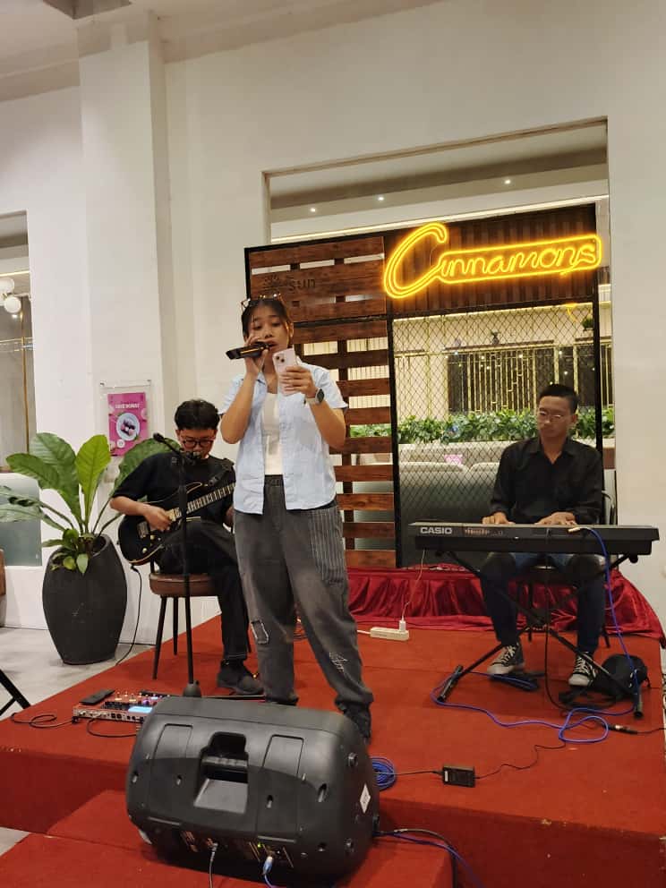 Madiun – Suasana Jumat malam, 7 November 2025 menjadi lebih meriah dan penuh energi kreatif di area outdoor Café The Sun Hotel Madiun. Para murid dari SMA Negeri 2 Madiun tampil mengisi acara Live Acoustic bertajuk “Cinnamons High School” dengan penuh percaya diri, menampilkan karya musik dan vokal yang menggambarkan perkembangan artistik mereka sebagai generasi muda kreatif. Acara yang dimulai pukul 19.00 WIB ini menghadirkan pertunjukan bernuansa santai, elegan, sekaligus menjadi ruang aktualisasi bagi para pelajar untuk tampil di panggung publik secara profesional. Ini menjadi praktik pembelajaran seni budaya yang bukan hanya berada di dalam kelas, tetapi juga terasa nyata melalui pengalaman langsung, interaksi real dengan audiens, evaluasi diri, konsolidasi mental performer, kerja sama antar pemain, serta kemampuan mengolah rasa dan ekspresi artistik dalam konteks pertunjukan sungguhan.