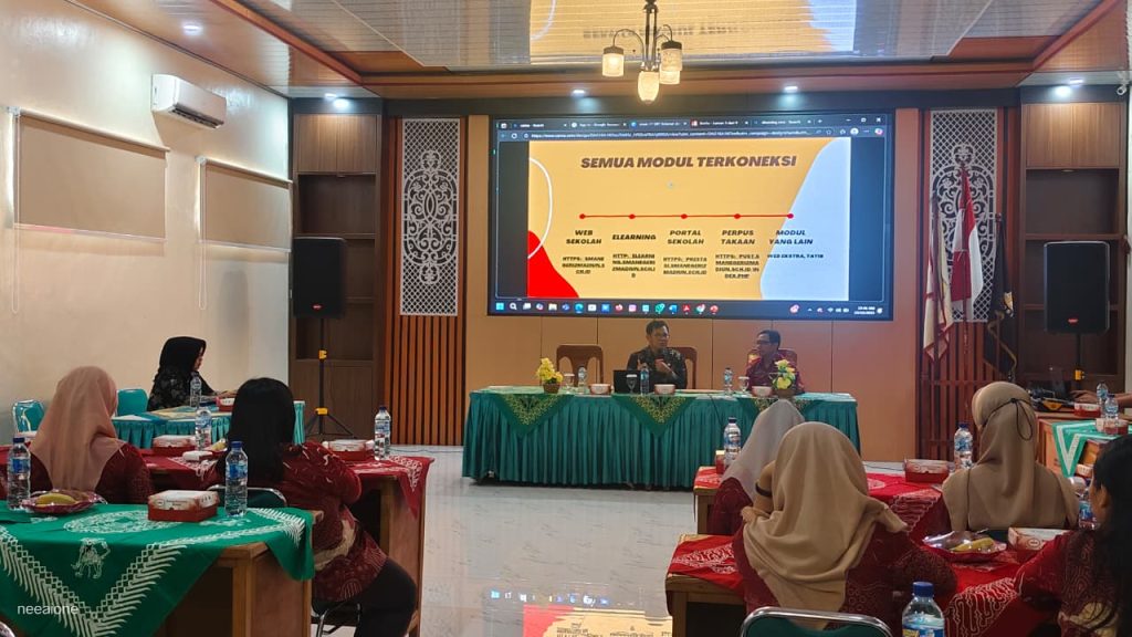 Acara kemudian dilanjutkan dengan penyampaian materi yang disampaikan Ibu Bekti Patria DH, S.S., M.Pd. dan Bapak Heru Suseno, S.Pd., M.Pd., yang membahas tentang strategi implementasi kurikulum berbasis digital serta pemanfaatan teknologi informasi dalam proses pembelajaran dan penilaian.