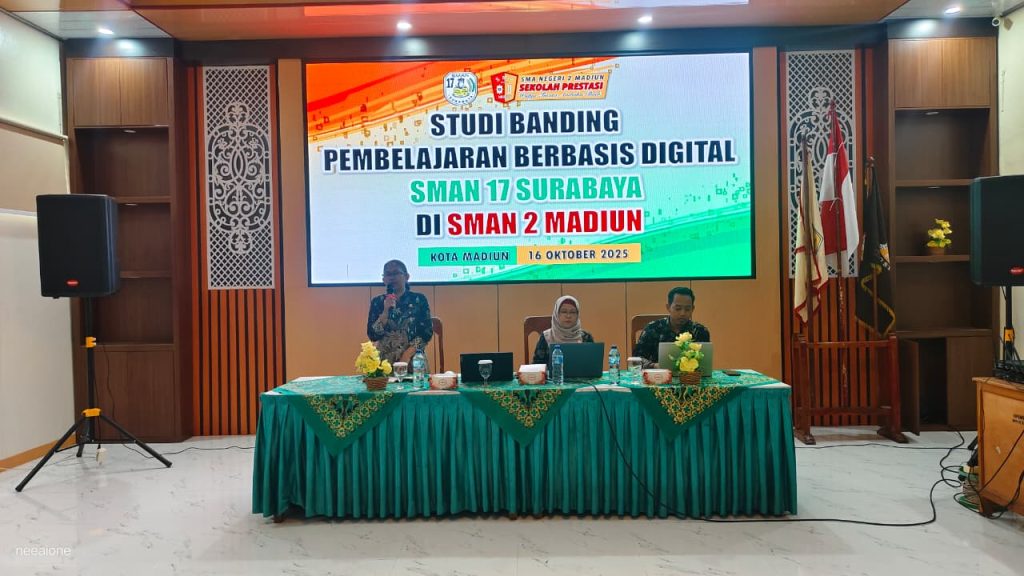 Kamis, 16 Oktober 2025, SMA Negeri 2 Madiun menerima kunjungan dari SMAN 17 Surabaya dalam rangka Pembelajaran Berbasis Digital. Kegiatan diawali dengan sambutan dari Kepala SMAN 2 Madiun, Bapak Anim Hadisusanto, S>Pd., M.Pd. yang menyampaikan apresiasi atas kunjungan tersebut serta harapan agar kegiatan ini menjadi wadah berbagi pengalaman dan inspirasi dalam penerapan pembelajaran digital.
