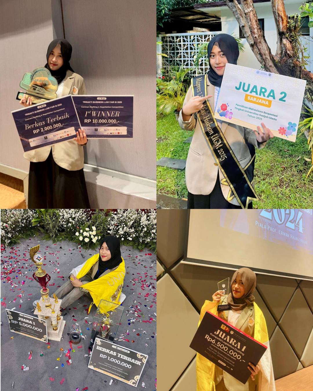 Perjuangan Dhea dalam meraih prestasi akhirnya berbuah manis. Dhea diterima menjadi mahasiswa Universitas Gadjah Mada (UGM) jurusan hukum tahun 2023 melalui jalur SNBP. Menjadi mahasiswa di salah satu kampus terbaik di Indonesia tentu saja memacu semangat Dhea untuk terus berkembang menjadi pribadi yang lebih baik. Saat menjalani perkuliahan, Dhea tetap aktif di berbagai kegiatan kampus. Ia aktif di organisasi kampus seperti Forum Penelitian dan Penulisan Hukum Palapa, Pemilihan Raya Mahasiswa FH UGM, CO-Fasilitator Pionir Gadjah Mada 2024 dan sebagainya. Meski mengikuti banyak organisasi, Dhea tetap banyak mengukir prestasi di UGM. Berikut prestasi Dhea selama menjadi mahasiswa UGM.