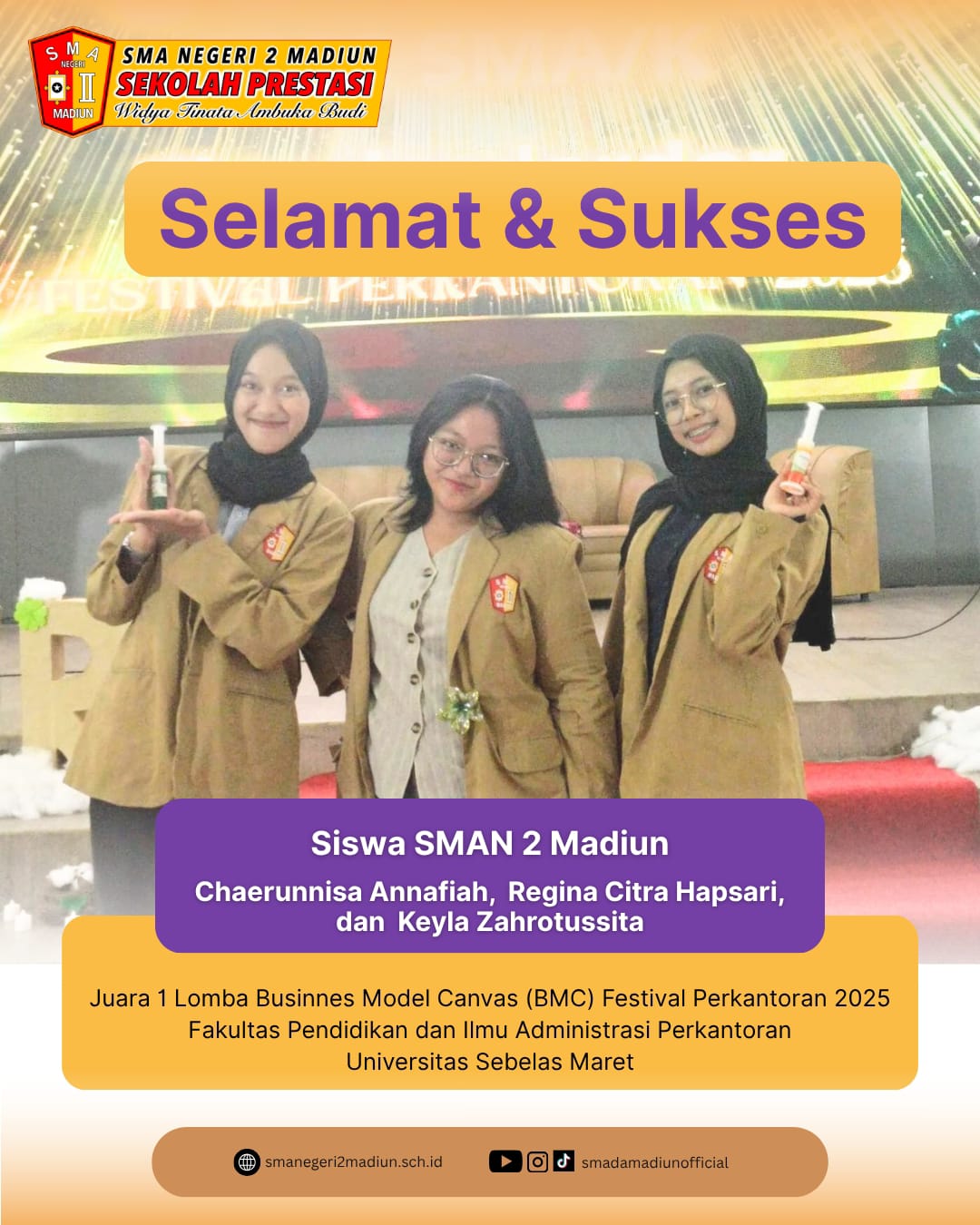 Prestasi Siswa SMAN 2 Madiun: Juara 1 Lomba Businnes Model Canvas (BMC) festival Perkantoran 2025, Fakultas Pendidikan dan Ilmu Administrasi Perkantoran, Universitas Sebelas Maret